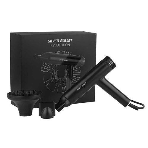 Extremely lightweight, compact and powerful. Silver Bullet Revolution Professional Hair Dryer is the humble hair dryer made exceptional. Get ready for incredible power and speed with a professional, super-fast BLDC 110,000 rpm motor. Exceptionally lightweight and compact design. 3 speed and 3 heat settings for all hair types. Ionic generator reduces frizz for a smoother, silkier finish. The clever auto clean function reverses the motor to clean the rear filter. Includes two magnetic nozzles, wide and regular, as well as diffuser. The Revolution is here.
